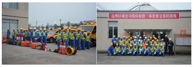 “各單位注意,現(xiàn)在時間2月26日上午6點(diǎn)整。我宣布2019年達(dá)州區(qū)域公司搶險搶修一體化緊急集結(jié)演練行動現(xiàn)在開始,請集結(jié)單位,帶齊裝備,到大竹縣騰飛大道1號大竹華潤燃?xì)鈨ε湔炯Y(jié)待命。到達(dá)時間不得遲于9點(diǎn)30分,收到請回答”。隨著一條條緊急集結(jié)命令的下達(dá),演練正式拉開帷幕。