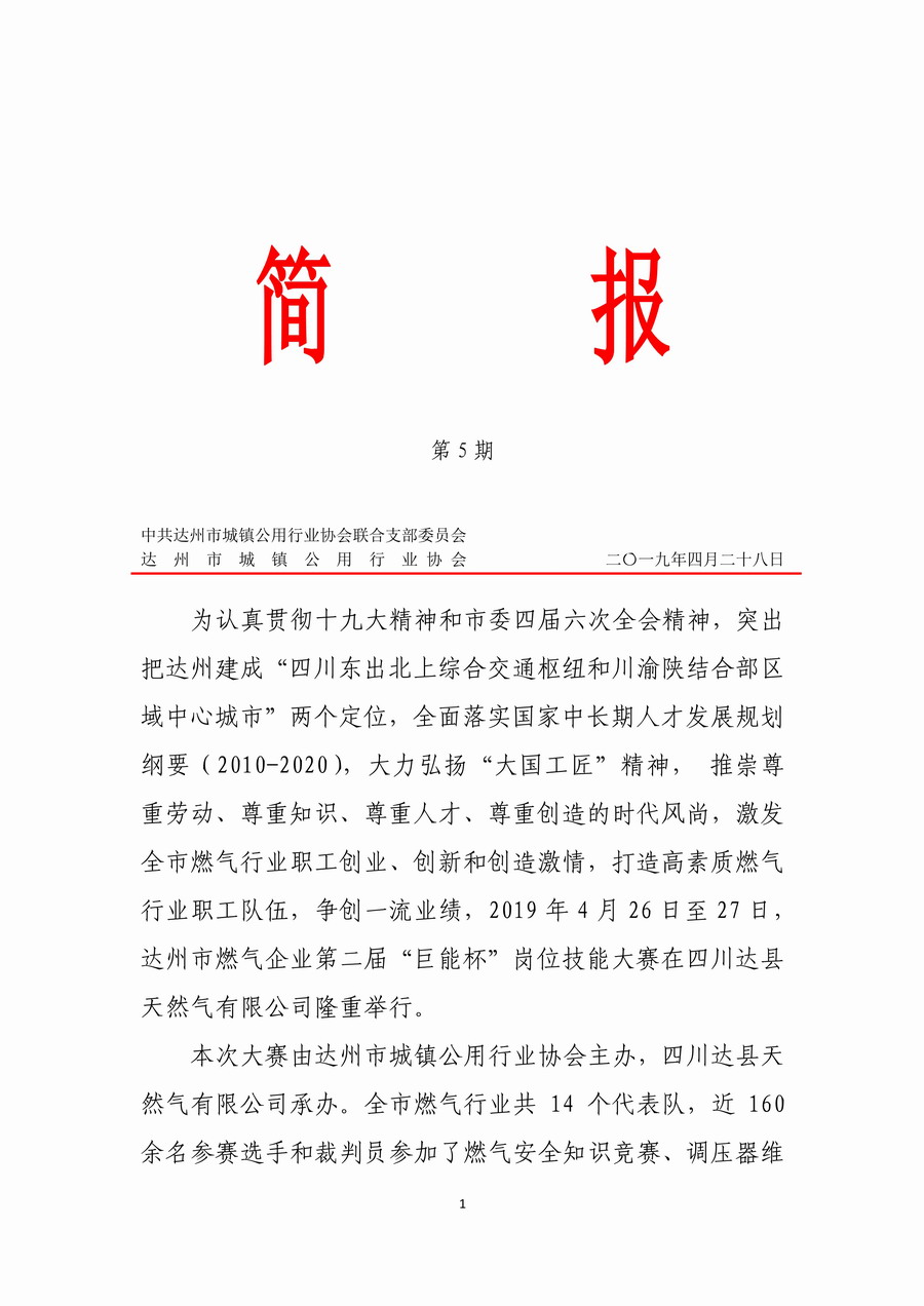 中共達(dá)州市城鎮(zhèn)公用行業(yè)協(xié)會(huì)聯(lián)合支部委員會(huì)2019年第五期簡報(bào)
