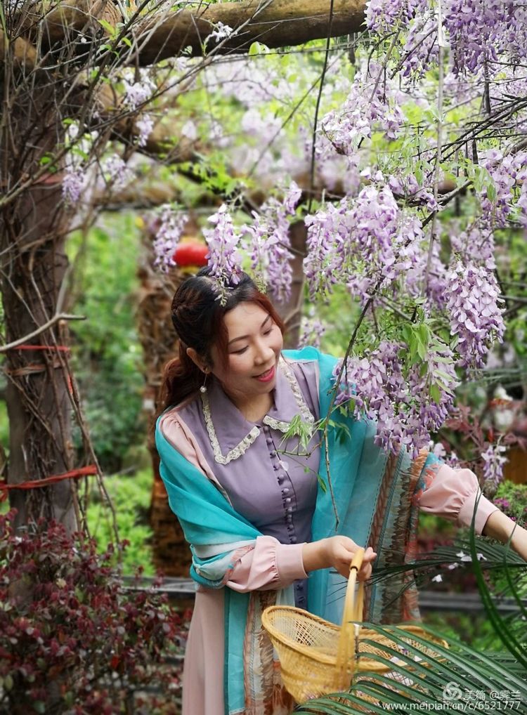 我聆聽著每一串紫藤的碎念淺吟,拾撿一片片飄落在風中的花絮,一籃子的相思化為動聽的柔情蜜語。