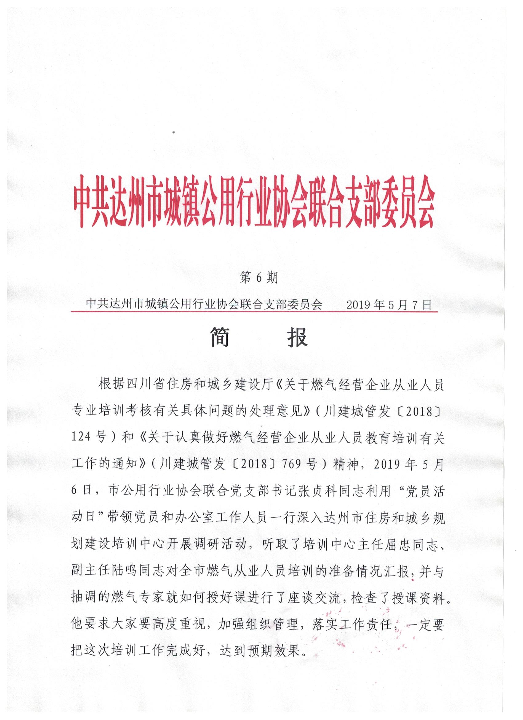 中共達(dá)州市城鎮(zhèn)公用行業(yè)協(xié)會(huì)聯(lián)合支部委員會(huì)2019年第六期簡(jiǎn)報(bào)