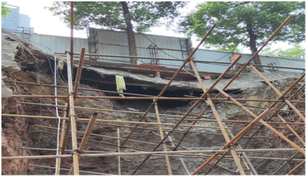 當(dāng)班搶險值班人員在接到報警后,立即趕赴現(xiàn)場了解情況,經(jīng)現(xiàn)場查勘,本次護(hù)坡塌方、滑坡事件導(dǎo)致公司1條De110的中壓燃?xì)?/SPAN>PE管道和1條DN80的次高壓燃?xì)怃摴埽託庹緦>)出現(xiàn)裸露、懸空情況。且由于塌方位置上方即為人行道,還有一顆綠化樹木以及鋪裝混凝土路面承壓在燃?xì)夤艿郎希率谷細(xì)夤艿朗艿骄薮蟮膲毫,很有可能會造成燃(xì)夤艿辣粔毫选簲,進(jìn)而導(dǎo)致燃?xì)庑孤?/SPAN>