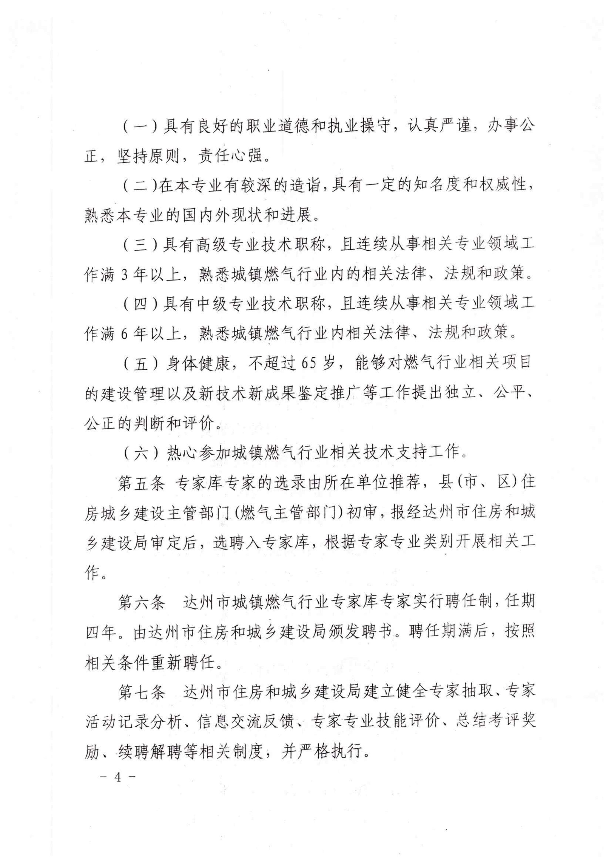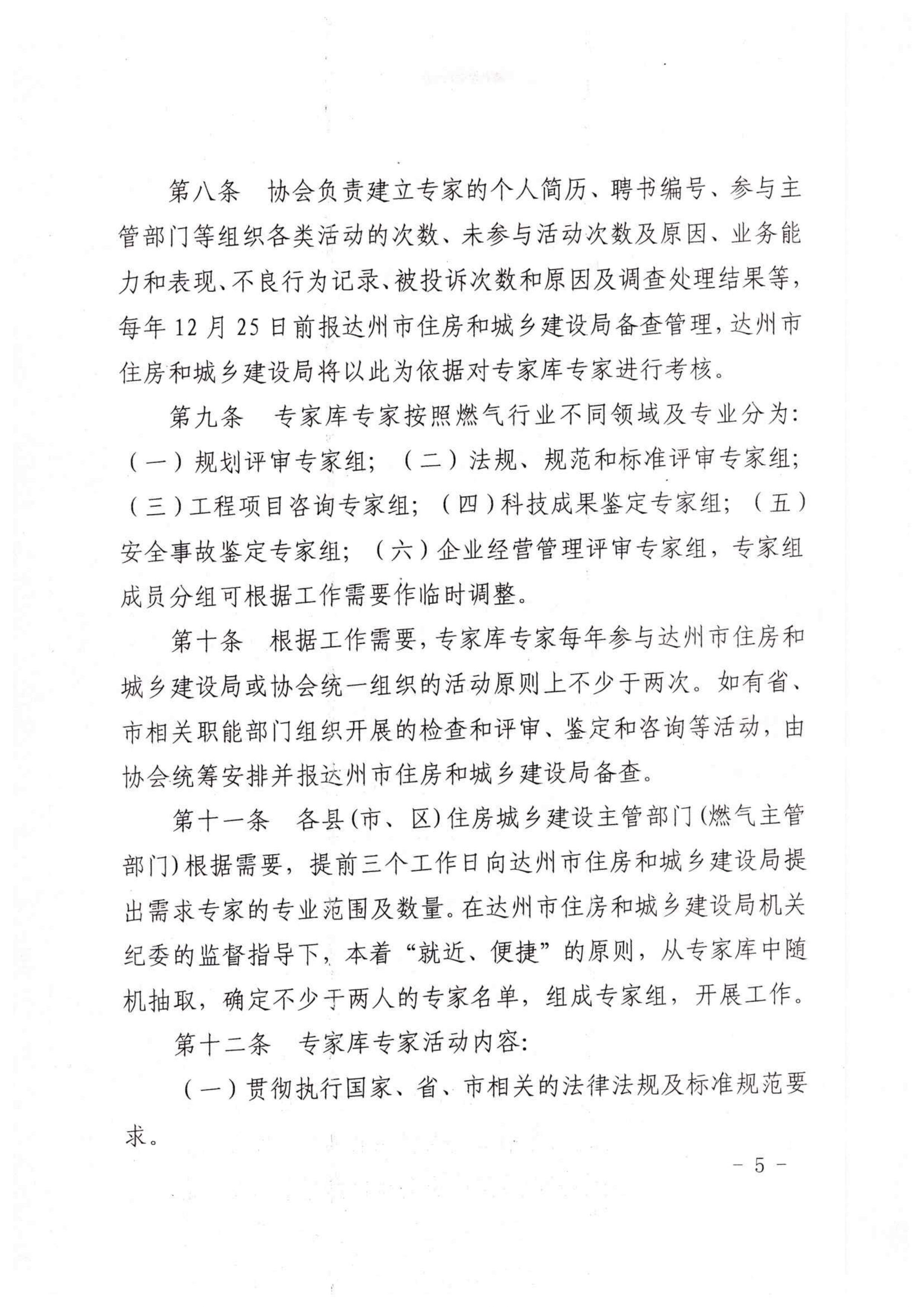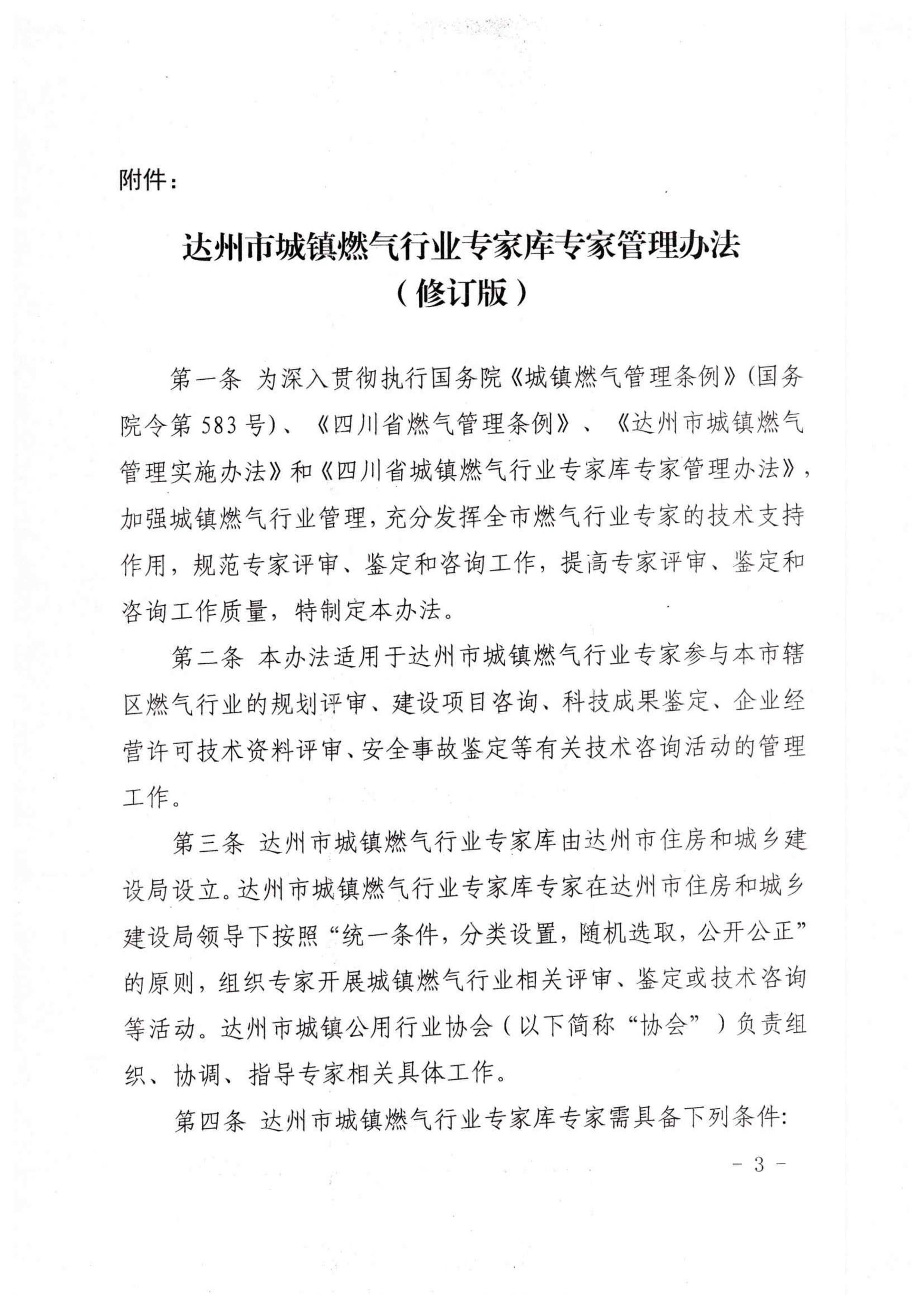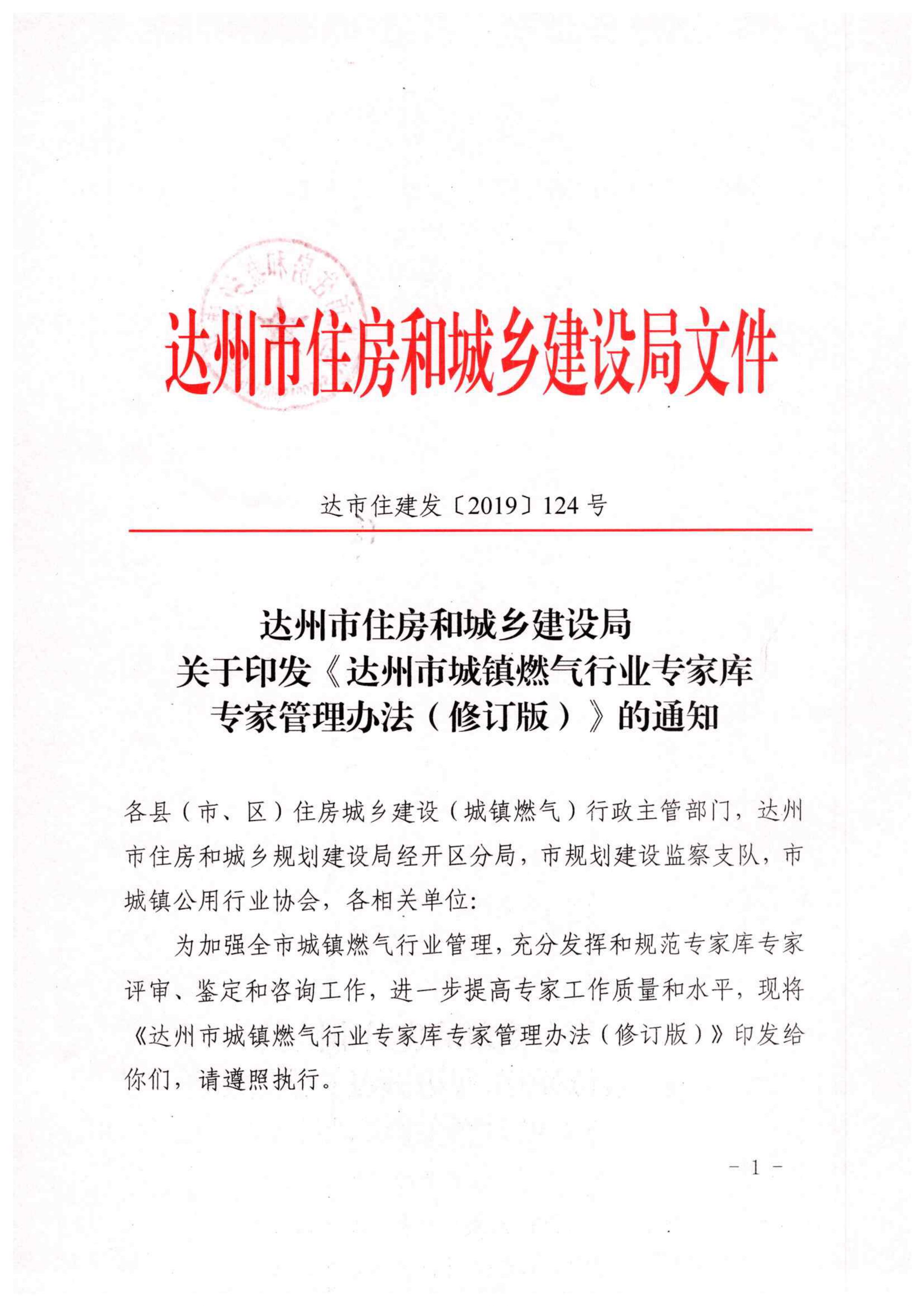 達州市住建局關于印發(fā)《達州市城鎮(zhèn)燃氣行業(yè)專家?guī)鞂<夜芾磙k法(修訂版)》的通知
