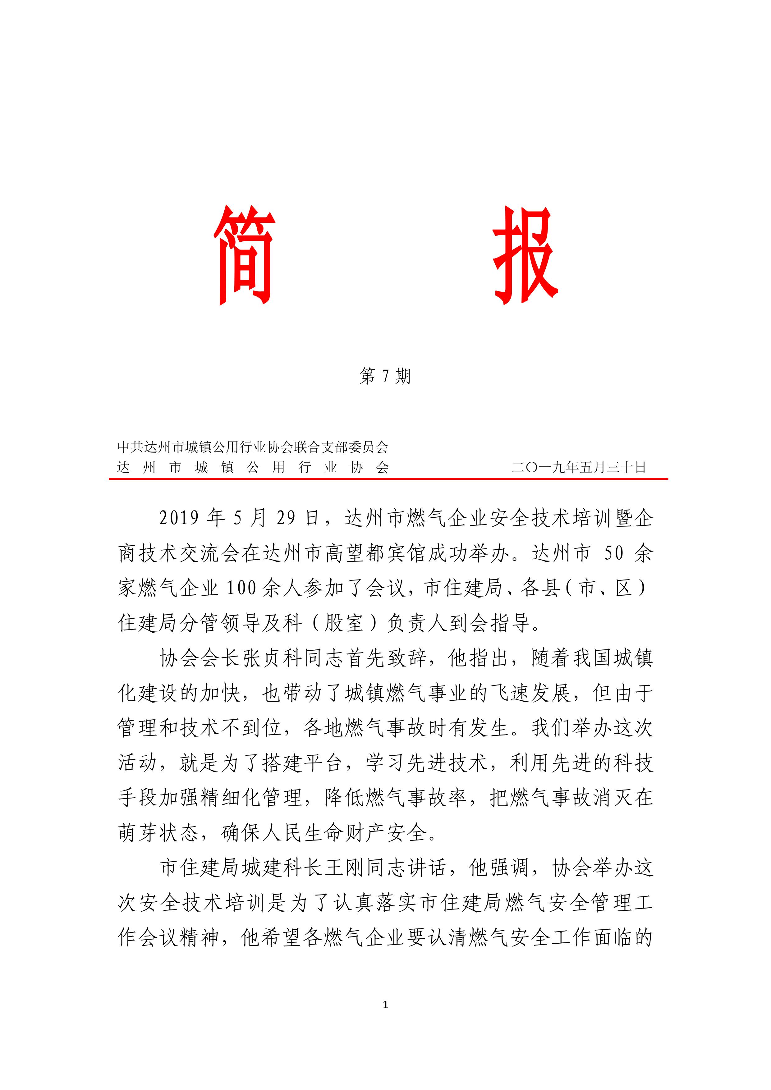 中共達(dá)州市城鎮(zhèn)公用行業(yè)協(xié)會(huì)聯(lián)合支部委員會(huì)2019年第七期簡報(bào)