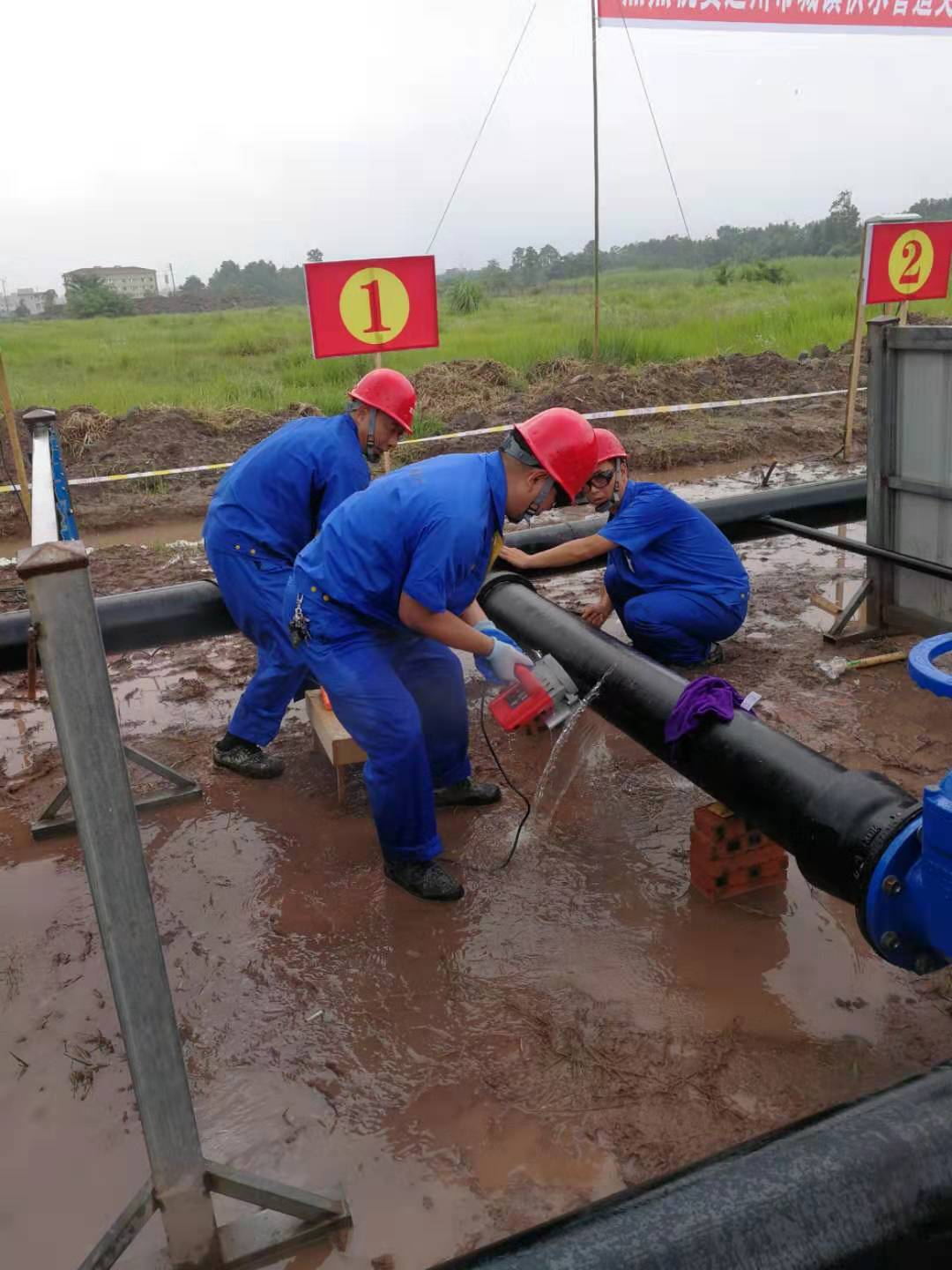 公司黨委書記、經(jīng)理羅曉宇,副經(jīng)理廖波帶領(lǐng)規(guī)劃安裝科3名搶修人員參加了本次競(jìng)賽活動(dòng)。本次競(jìng)賽項(xiàng)目為城市供水管道應(yīng)急搶險(xiǎn),模擬市政供水管道(DN200球墨鑄鐵)多處發(fā)生爆裂,對(duì)爆裂管道連接剛性水泥接口,俗稱套筒打頭。我公司3名選手在競(jìng)賽活動(dòng)中精心規(guī)劃,分工協(xié)作,頂著烈日在泥濘中進(jìn)行搶險(xiǎn),在最短的時(shí)間內(nèi)優(yōu)質(zhì)、規(guī)范地完成了競(jìng)賽項(xiàng)目。經(jīng)過(guò)緊張激烈的角逐,通過(guò)搶險(xiǎn)時(shí)限、搶險(xiǎn)質(zhì)量及搶險(xiǎn)相關(guān)工作標(biāo)準(zhǔn)綜合考核,最終我公司參賽隊(duì)獲得了二等獎(jiǎng)的優(yōu)異成績(jī)。