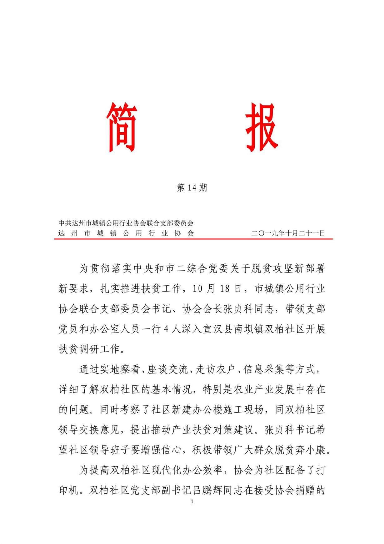 中共達(dá)州市城鎮(zhèn)公用行業(yè)協(xié)會(huì)聯(lián)合支部委員會(huì)2019年第十四期簡報(bào)