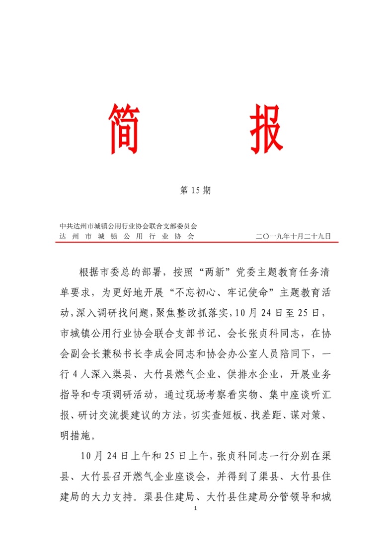 中共達州市城鎮(zhèn)公用行業(yè)協會聯合支部委員會2019年第十五期簡報