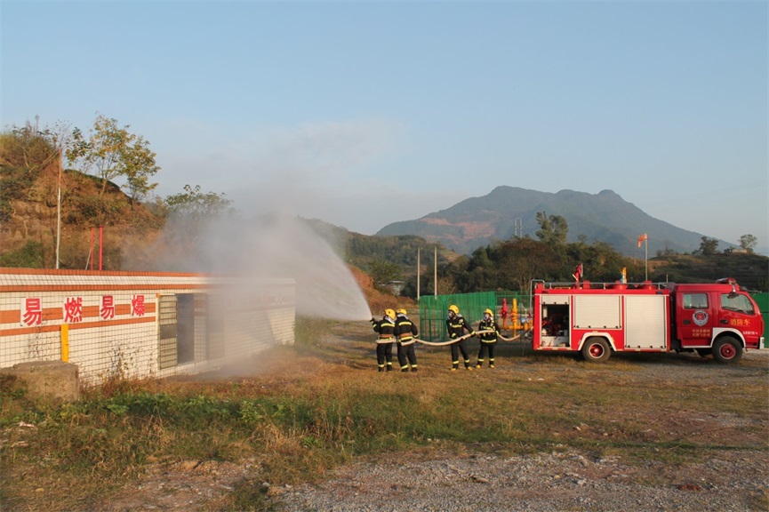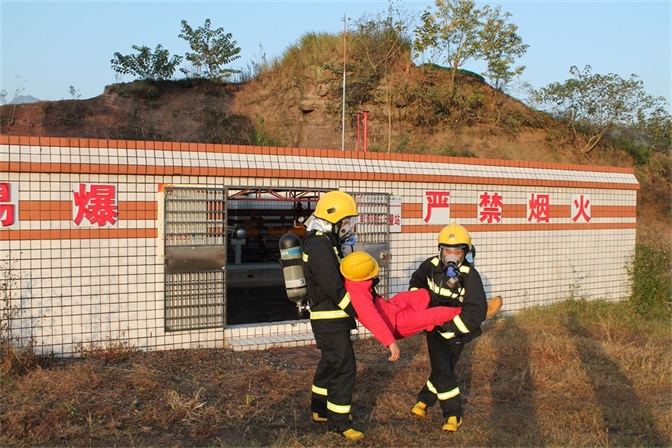 本次演練活動(dòng),將消防安全培訓(xùn)和消防應(yīng)急實(shí)踐有機(jī)結(jié)合,集中對(duì)公司員工作了進(jìn)一步的消防安全知識(shí)培訓(xùn)和應(yīng)急演練。全體員工認(rèn)真學(xué)習(xí)了應(yīng)急疏散逃生基本常識(shí)、干粉滅火器使用方法和天然氣泄漏事故處理方法等。在認(rèn)真聽(tīng)講及觀摩后,每位員工還切身體驗(yàn)了現(xiàn)場(chǎng)滅火救火。面對(duì)熊熊大火,每位員工都表現(xiàn)得沉穩(wěn)勇敢,嚴(yán)格按照滅火步驟和方法,將火情迅速撲滅。同時(shí),在我公司南壩調(diào)壓計(jì)量站,還進(jìn)行了因天然氣泄漏引發(fā)現(xiàn)場(chǎng)人員昏厥事故的救援演練。演練中,微型消防站值班人員接警后,立即組織義務(wù)消防隊(duì)員快速地穿戴防火服和防護(hù)面罩,帶上空氣呼吸器,坐上消防車快速到達(dá)天然氣泄漏現(xiàn)場(chǎng),第一時(shí)間將昏厥人員抬至安全處,讓其呼吸新鮮空氣,并實(shí)施搶救;滅火隊(duì)員熟練打開(kāi)消防水帶,及時(shí)稀釋空氣中的天然氣,有效防止爆燃引發(fā)更大火災(zāi)。