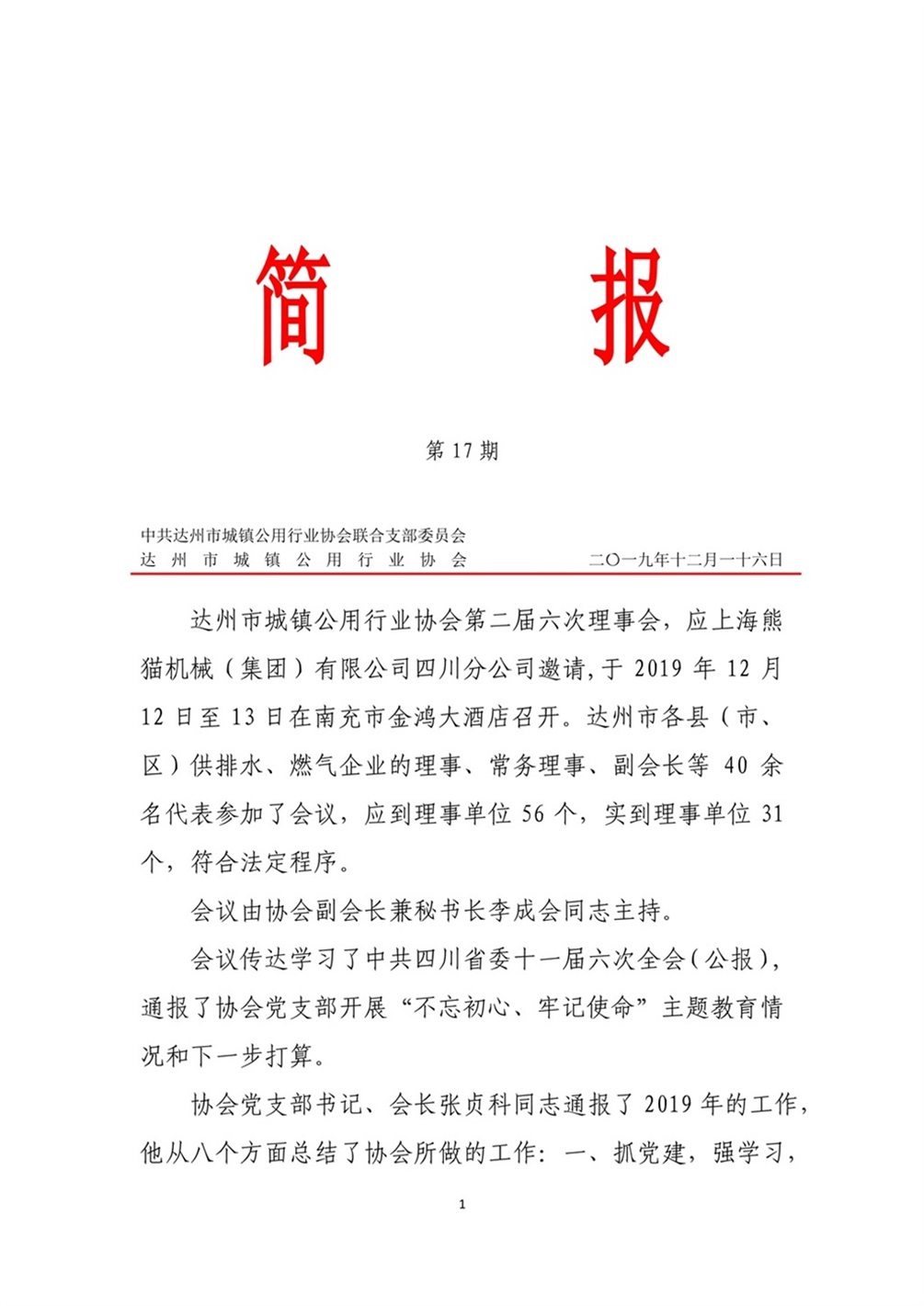中共達(dá)州市城鎮(zhèn)公用行業(yè)協(xié)會聯(lián)合支部委員會2019年第十七期簡報(bào)