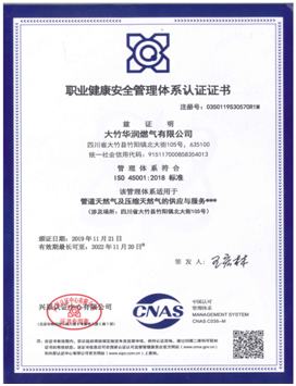 2019年11月21日,大竹公司正式取得由興源認(rèn)證中心頒發(fā)的ISO45001:2018職業(yè)健康安全管理體系認(rèn)證證書。