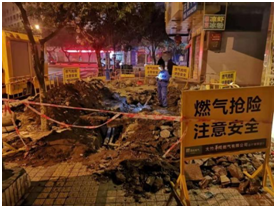 好事多磨難,一次次確定的可疑點(diǎn)都被開挖否認(rèn),搶修隊員們?yōu)榱藸幦r間,輪流作業(yè),都顧不上吃飯。連續(xù)奮戰(zhàn),直到找到泄漏點(diǎn)后,大家懸著的一顆心才終于放下了一半。但是新的問題又出現(xiàn)了,泄漏管道為PEDN160主管道,19點(diǎn)30分又正值用氣高峰,一旦停止供氣影響用戶多達(dá)上萬,又加上夜間作業(yè)恢復(fù)供氣風(fēng)險太高。在現(xiàn)場研討后決定延遲停氣時間 (停氣時間:12月4日20:30-12月5日6:00),同時利用短信平臺向用戶發(fā)布停氣復(fù)供時間和注意事項。
