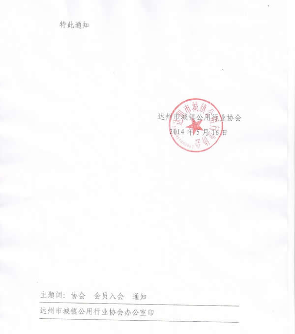 達(dá)州市城鎮(zhèn)公用行業(yè)協(xié)會(huì)關(guān)于召開(kāi)第一屆第三次會(huì)員大會(huì)的通知
