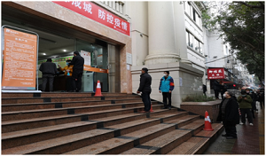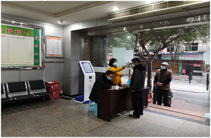 (二)重檢測。公司每天在營業(yè)廳門口安排了2名員工負責用戶體溫檢測、信息登記等,確保大廳內(nèi)同一時間只停留2名用戶辦理業(yè)務(wù),且2名用戶須保持間隔2米以上。