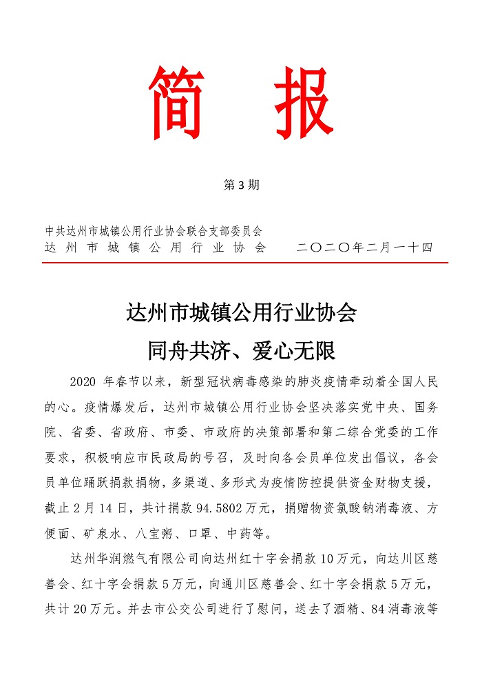 中共達(dá)州市城鎮(zhèn)公用行業(yè)協(xié)會(huì)聯(lián)合支部委員會(huì)2020年第三期簡(jiǎn)報(bào)